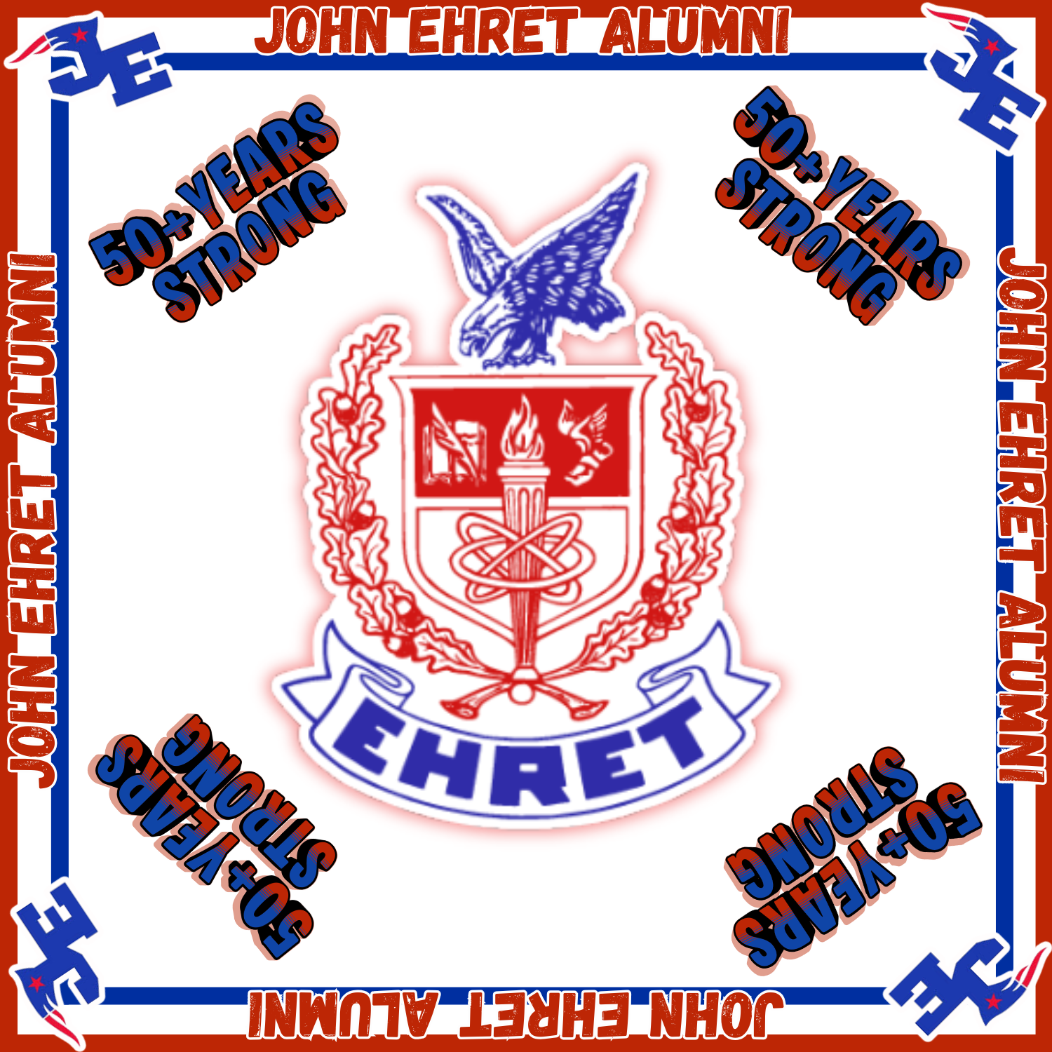 Silk Head scarf 95x95. Scarf hard a printed logo of school Crest and 50 Years Strong printed on it with school JE Logo to accompany it.